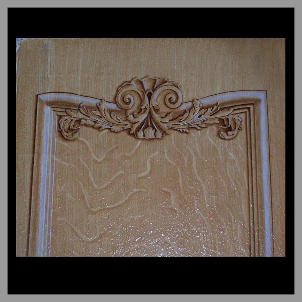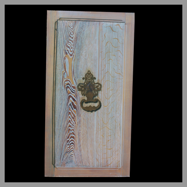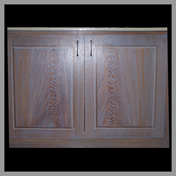 Chêne cérusé, moulures et heurtoir à la feuille d'or.